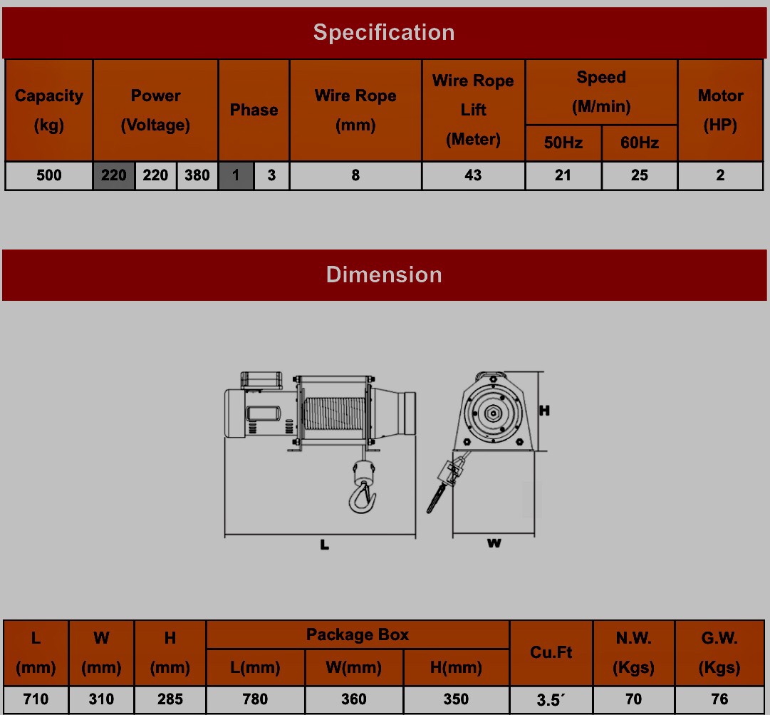 TẢI TRỌNG :500 KG-220V